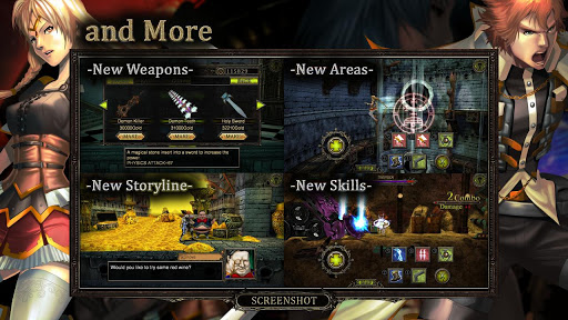 You play as Sabio and Dawn. You have to kill demons before they beat you. You earn experience and coins during battles. After getting certain experience point, your character will level up and increase abilities. For coins you earn, you can make use of them for recovery items.