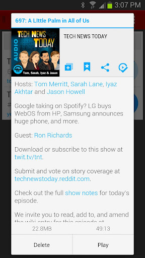Stay up to date with all the latest podcasts (or netcasts if you're Leo) with one easy to use app. Simply add your favourite podcasts, and you'll be able to stream or download new episodes as they become available.