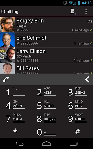 *Call log grouped by contact