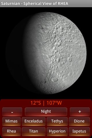 Saturnian also computes detailed physical and positional ephemerides for Saturn and its major moons. Furthermore, a chart is provided showing Saturn's elongation from the Sun.