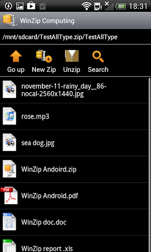 Compatible with Android operating systems 2.1 (Eclair), 2.2 (Froyo), 2.3 (Gingerbread), 3.x (Honeycomb) and 4.x (Ice Cream Sandwich), WinZip for Android is available now as a free English app.